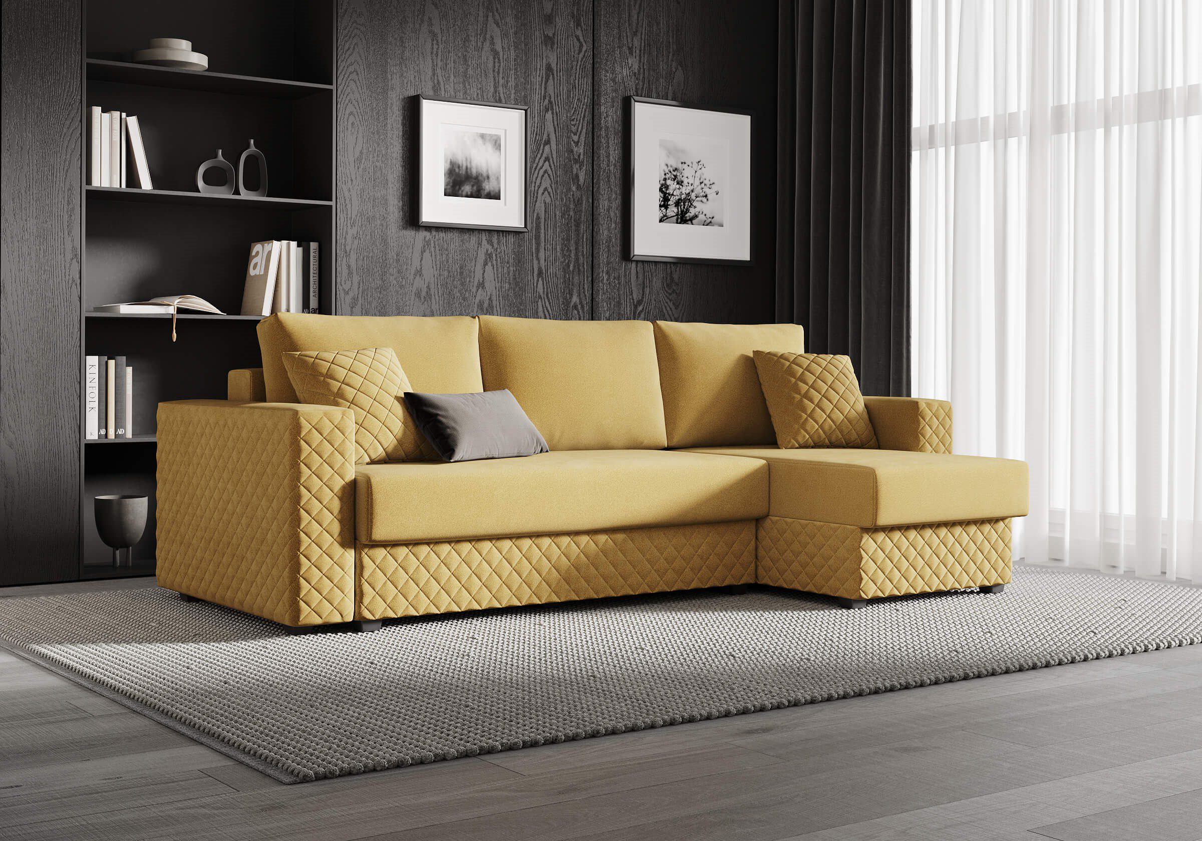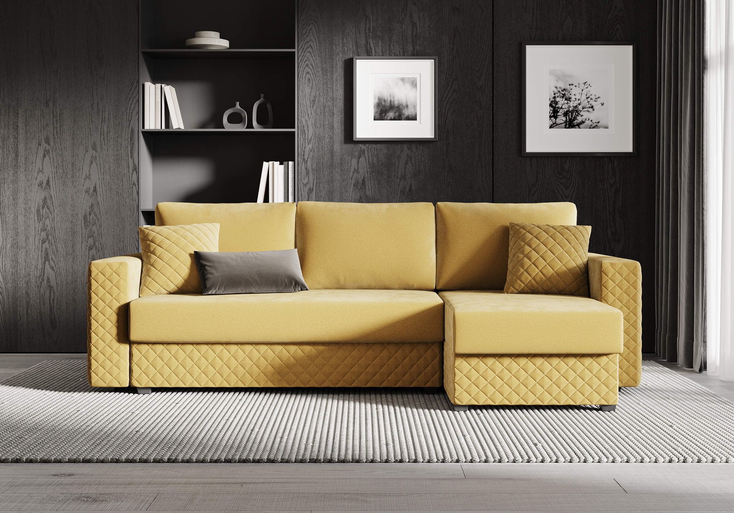 Диван оснащён современным механизмом трансформации пантограф, который обеспечивает лёгкость и удобство в использовании. В его основе лежит ортопедический матрас с независимым пружинным блоком, что гарантирует комфортный отдых и здоровый сон. Удобная глубина и высота сидения способствуют повседневному комфорту, позволяя расслабиться после долгого дня. Декоративная стёжка на подлокотниках и цоколе подчёркивает строгие, геометрические формы дивана, придавая ему стильный и современный вид. Задняя спинка дивана защищает от прикосновения со стеной во время сна, а также предотвращает возможные повреждения и загрязнения стен. В угловой секции (оттоманка) предусмотрено удобное место для хранения, что позволяет рационально использовать пространство. В комплект дивана входят две стёганные декоративные подушки, которые дополняют его внешний вид и обеспечивают комфорт. При сборке вы можете самостоятельно выбрать, с какой стороны будет расположен угол — справа или слева.