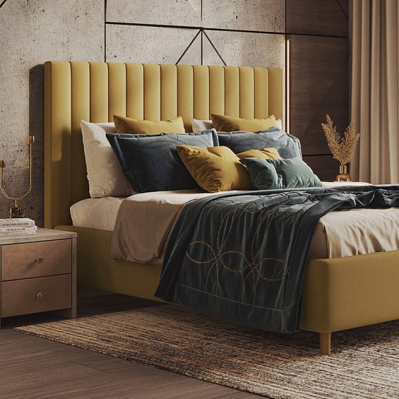 - С изголовьями различной высоты, формы и глубины — от лаконичных до акцентных.