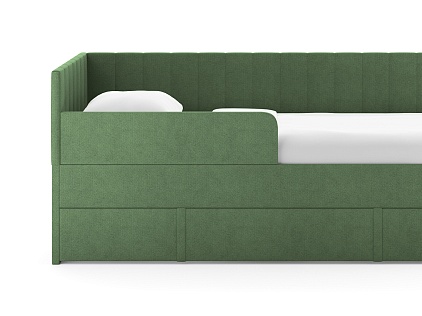 Современная детская кровать — воплощение удобства и яркого дизайна. Универсальный подлокотник устанавливается как с левой, так и с правой стороны — подстраивается под любую комнату. Выдвижной ящик легко превращается во второе спальное место или вместительный короб для хранения игрушек и белья. Идеальное решение для комфортного сна и экономии пространства.